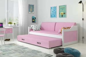 DAWID 90X200 kihúzható ifjúsági ágy matraccal és fiókkal, fehér/rózsaszín