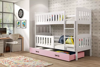 Junior emeletes ágy KUBUŚ 90X190 fiókkal, fehér/rózsaszín