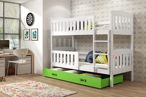 Junior emeletes ágy KUBUŚ 90X190 fiókkal, fehér/zöld