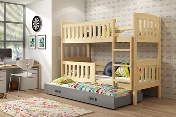 Háromszemélyes ifjúsági ágy KUBUŚ 90X200 fiókkal, fenyő/grafit