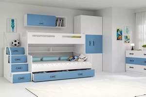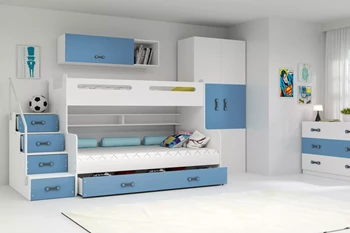MAX 3 emeletes ágy 120X200 fiókkal, kék színű, ifjúsági emeletes ágy, kék