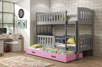 KUBUŚ 90X200 ifjúsági háromszemélyes ágy matraccal és fiókkal, grafit/rózsaszín