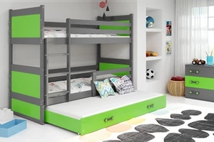 Háromszemélyes RICO 90X200 ifjúsági ágy fiókkal, grafit/zöld