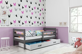 ERYK 80X190 egyszemélyes ifjúsági ágy fiókkal, grafit/fehér