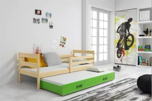 Éric 90x190 trundle tiniágy matraccal és fiókkal, fenyő/zöld