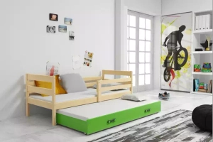 Éric 90x190 ágyneműtartós tiniágy fiókkal, fenyő/zöld