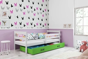 Ifjúsági egyszemélyes ágy ERYK 90X200 fiókkal, fehér/zöld