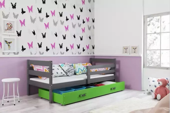 Éric 90x190 egyszemélyes tiniágy fiókkal, szürke/zöld
