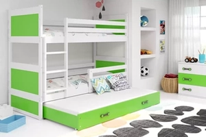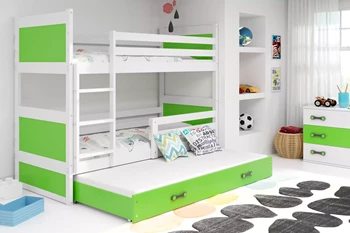 Junior háromszemélyes ágy RICO 90X200 fiókkal, fehér/zöld
