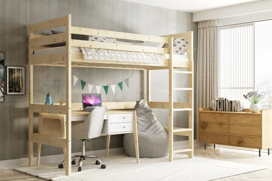 3 SZEMÉLYES TINI EMELETES ÁGY RICO FEHÉR KERET FEHÉR PANELEK FEHÉR FIÓK 90 X 190