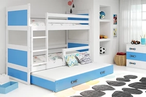 Rico 3-személyes emeletes ágy 90x190 fiókkal, fenyő/kék
