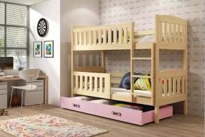 Jacquot 90x190 tini emeletes ágy fiókkal, fenyő/rózsaszín, fenyőfa/rózsaszín