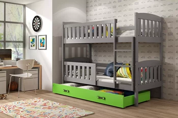 KUBUŚ 90X200 emeletes ágy fiókkal, grafit/zöld