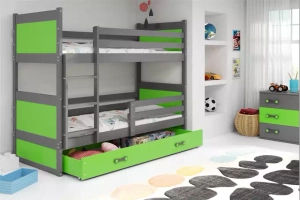 Rico emeletes ágy 90x190 fiókkal, szürke/zöld