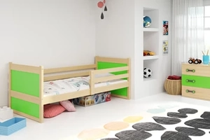 Junior egyszemélyes ágy RICO 80X190 matraccal, fenyő/zöld