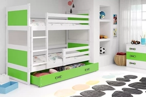 Ifjúsági emeletes ágy RICO 90X200 fiókkal, fehér/zöld