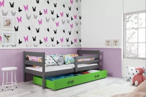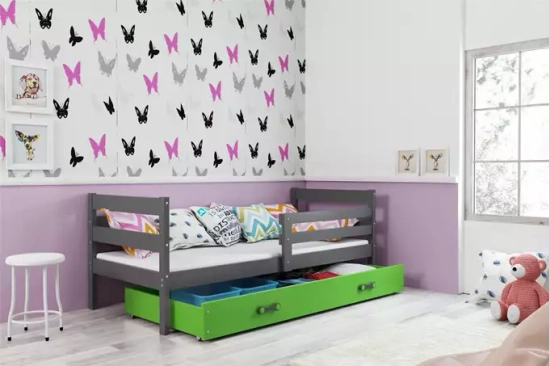 Éric egyszemélyes tiniágy 90x190 matraccal és fiókkal, szürke/zöld