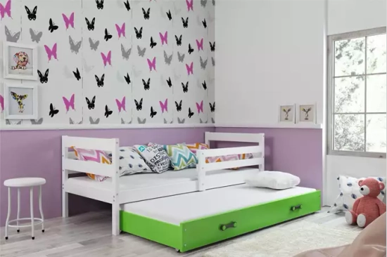 Éric 90x190 trundle tiniágy matraccal és fiókkal, fehér/zöld