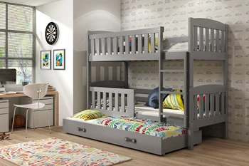KUBUŚ 90X190 háromszemélyes ifjúsági ágy matraccal és fiókkal, grafit/fehér