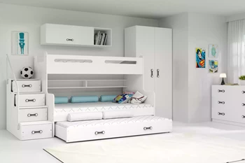 Háromszemélyes ifjúsági ágy MAX 3 120X200 matraccal és fiókkal, fehér színben