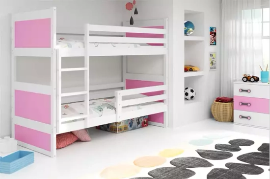 Rico tini franciaágy 90x190, matraccal és fiókkal, fenyő/rózsaszín