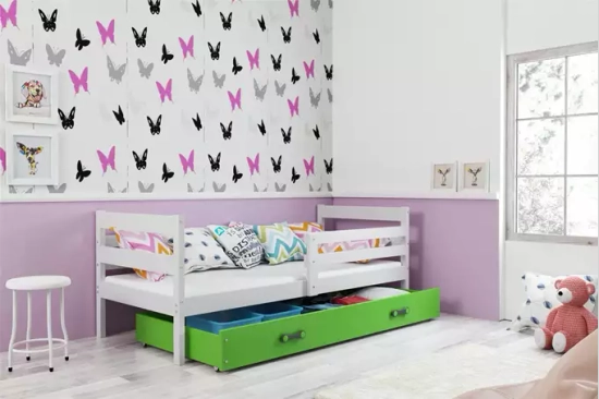 Éric egyszemélyes tiniágy 90x190 matraccal és fiókkal, fehér/zöld