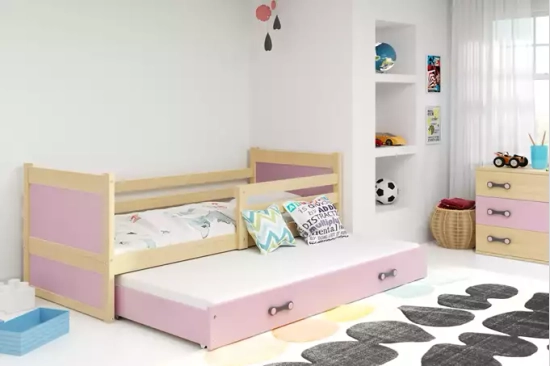 Rico tini franciaágy 90x190 fiókkal, fenyő/rózsaszín