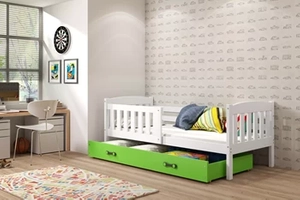 KUBUŚ 80X160 egyszemélyes ágy fiókkal, fehér/zöld