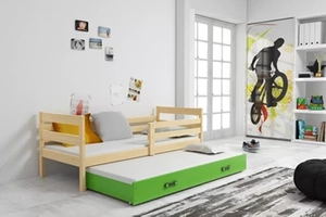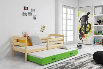 Kihúzható ifjúsági ágy ERYK 90X200 fiókkal, fenyő/zöld