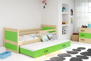 RICO 90X200 kihúzható ifjúsági ágy fiókkal, fenyő/zöld