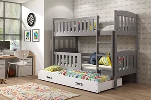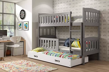 KUBUŚ 90X200 háromszemélyes ifjúsági ágy fiókkal, grafit/fehér