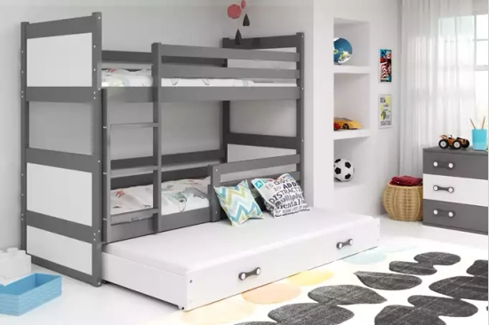 Rico 3 üléses tini emeletes ágy 90x190 fiókkal, szürke/fehér