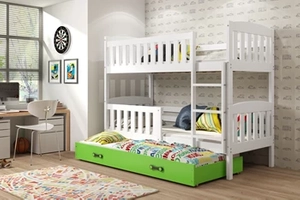 KUBUŚ 90X200 ifjúsági háromszemélyes ágy matraccal és fiókkal, fehér/zöld