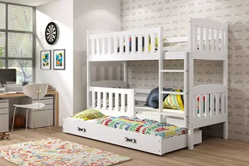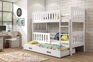 KUBUŚ 90X200 háromszemélyes ágy fiókkal, fehér színben