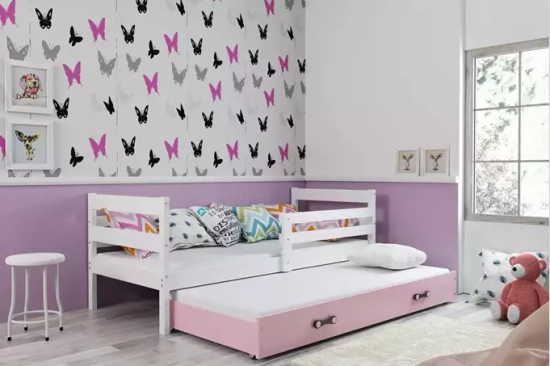 Éric 90x190 trundle tiniágy matraccal és fiókkal, fehér/rózsaszín