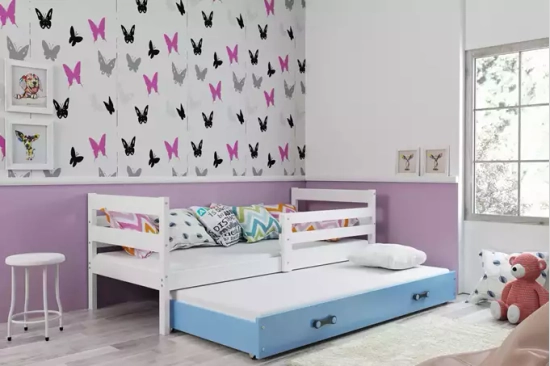 Éric 90x190 trundle tiniágy matraccal és fiókkal, fehér/kék