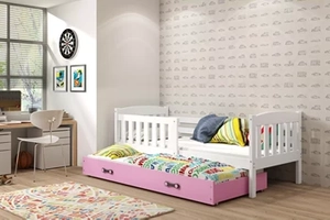 KUBUŚ 90X200 kihúzható ifjúsági ágy fiókkal, fehér/rózsaszín