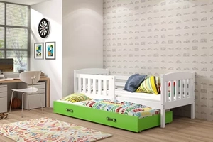 KUBUŚ 90X200 kihúzható ifjúsági ágy fiókkal, fehér/zöld