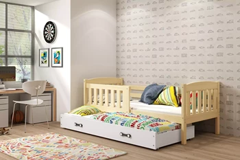 Kihúzható ifjúsági ágy KUBUŚ 90X200 fiókkal, fenyő/fehér