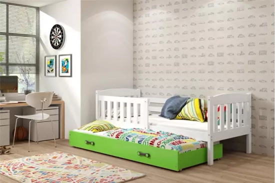 Jacquot 90x190 tini franciaágy fiókkal, fehér/zöld