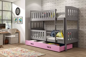 KUBUŚ 90X200 ifjúsági emeletes ágy matraccal és fiókkal, grafit/rózsaszín