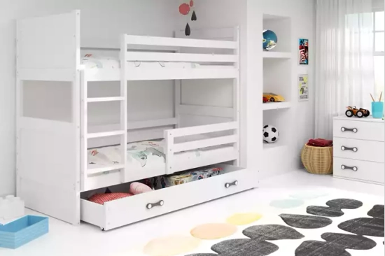 Rico emeletes ágy 90x190 matraccal és fiókkal, fenyőfa/fehér