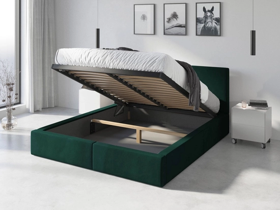 HILTON 140X200 kárpitozott hálószoba ágy, zöld, tárolódobozzal