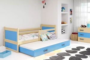 RICO 80X190 kihúzható ifjúsági ágy fiókkal, fenyőfa/kék