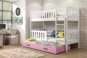 KUBUŚ 90X200 ifjúsági háromszemélyes ágy fiókkal, fehér/rózsaszín
