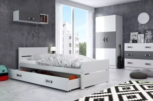 BARTEK 90X200 egyszemélyes ifjúsági ágy matraccal és fiókkal, fehér színben