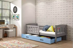 Jacquot 90x190 egyszemélyes tiniágy matraccal és fiókkal, szürke/kék