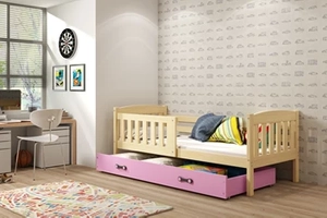 KUBUŚ 90X200 egyszemélyes ifjúsági ágy fiókkal, fenyő/rózsaszín