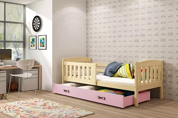 KUBUŚ 80X190 egyszemélyes ifjúsági ágy fiókkal, fenyő/rózsaszín