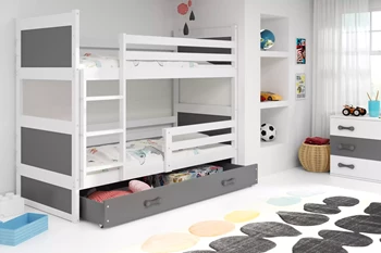 Ifjúsági emeletes ágy RICO 90X200 fiókkal, fehér/grafit